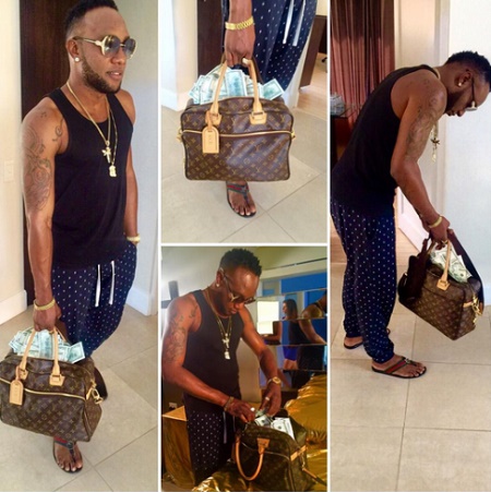 Photo: Nigerian Artiste KCee Flaunts Bag of Dollars on Instagram