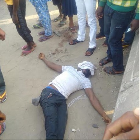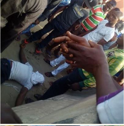 Onlookers massively gathered to stare at his dead body on the ground with responsible government agencies contacted to take the body to the morgue.
